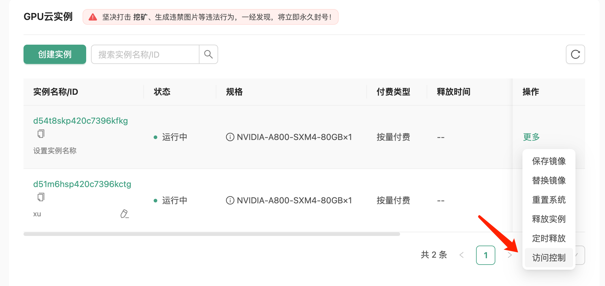 2.1 进入对应实例的访问控制