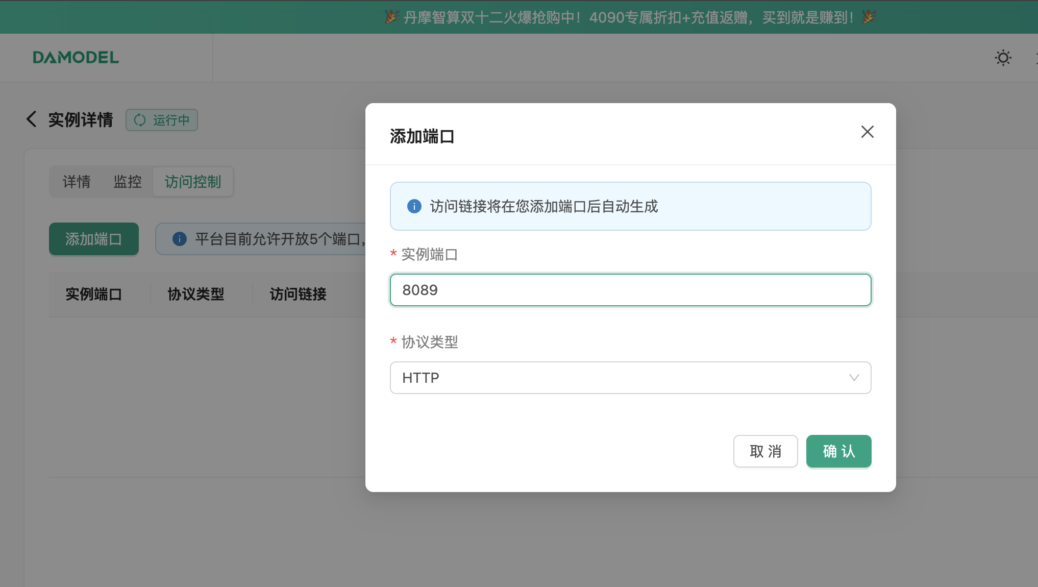 | SSH 命令 | ssh -p 43173 root@cn-north-b.ssh.damodel.com |